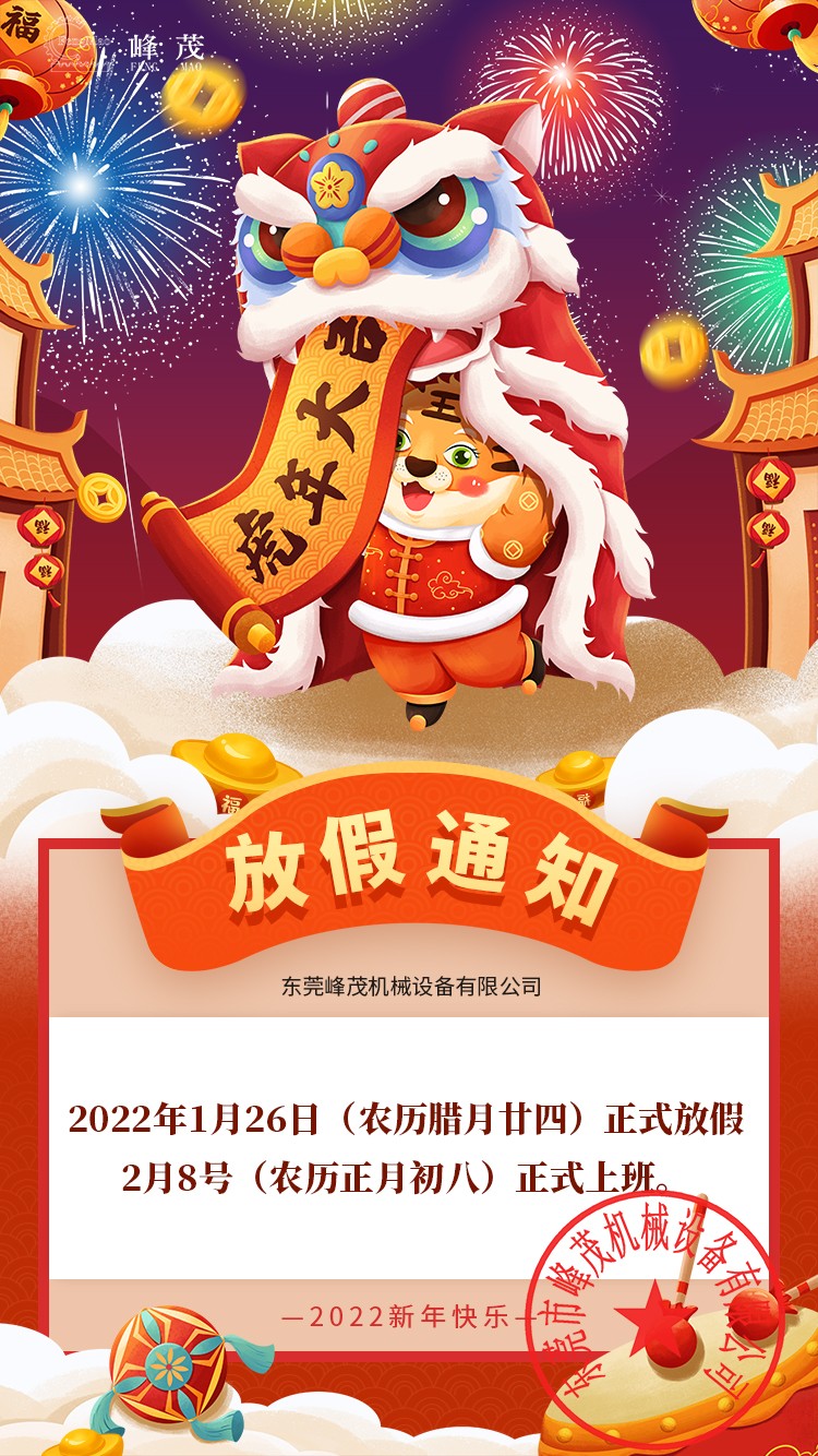 2022年1月26日(農歷臘月廿四)正式放假!2月8號(農歷正月初八)正式上班。